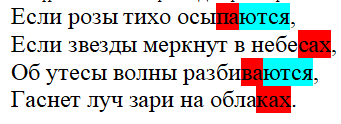 И этот двойной ритм, хореически-ямбический, будет во всех нечетных строках стиха. Кроме последней строфы, где уже другая структура. Три строки чисто хореически и последняя, повторяющая первую, хореически-ямбическая.