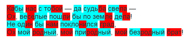 Что происходит в это время с восприятием стиха? Левое полушарие, которое у нас любит во всем порядок, обожает четкие структуры и правильные ритмы, тут же реагирует на этот пропуск и старается его заполнить, достроить. В данном случае это легко: у нас в памяти мелодия, которая достроит нотой потерянную стопу. Мы просто мысленно протянем последний слог в слове «моя» — моя-а.